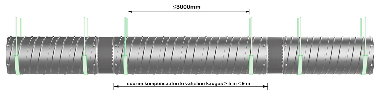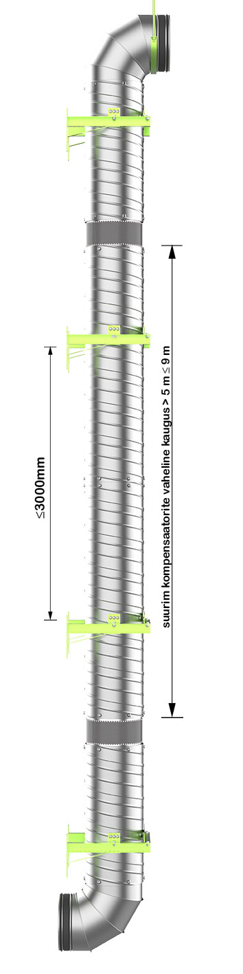- Kui liini pikkus on > 5 m ≤ 9 m kasuta suitsutoru kompensaatorit toru joonpaisumise kompenseerimiseks (kaitseb torustikku pikipaisumise ja külgliikumise eest).